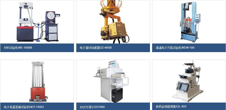 公司現已擁有檢測、檢驗設備83臺(套),其中有4MeV直線加速器(穿透能力250mm鋼材),Co60同位素探傷機(穿透能力250mm鋼材),NDT—1500J電子低溫落錘試驗機,進口便攜式、臺式光譜儀,可以定量分析碳鋼、合金鋼、不銹鋼成份,高溫電子試驗機,低溫沖擊機,紅外碳硫儀,激光電子全站儀等。